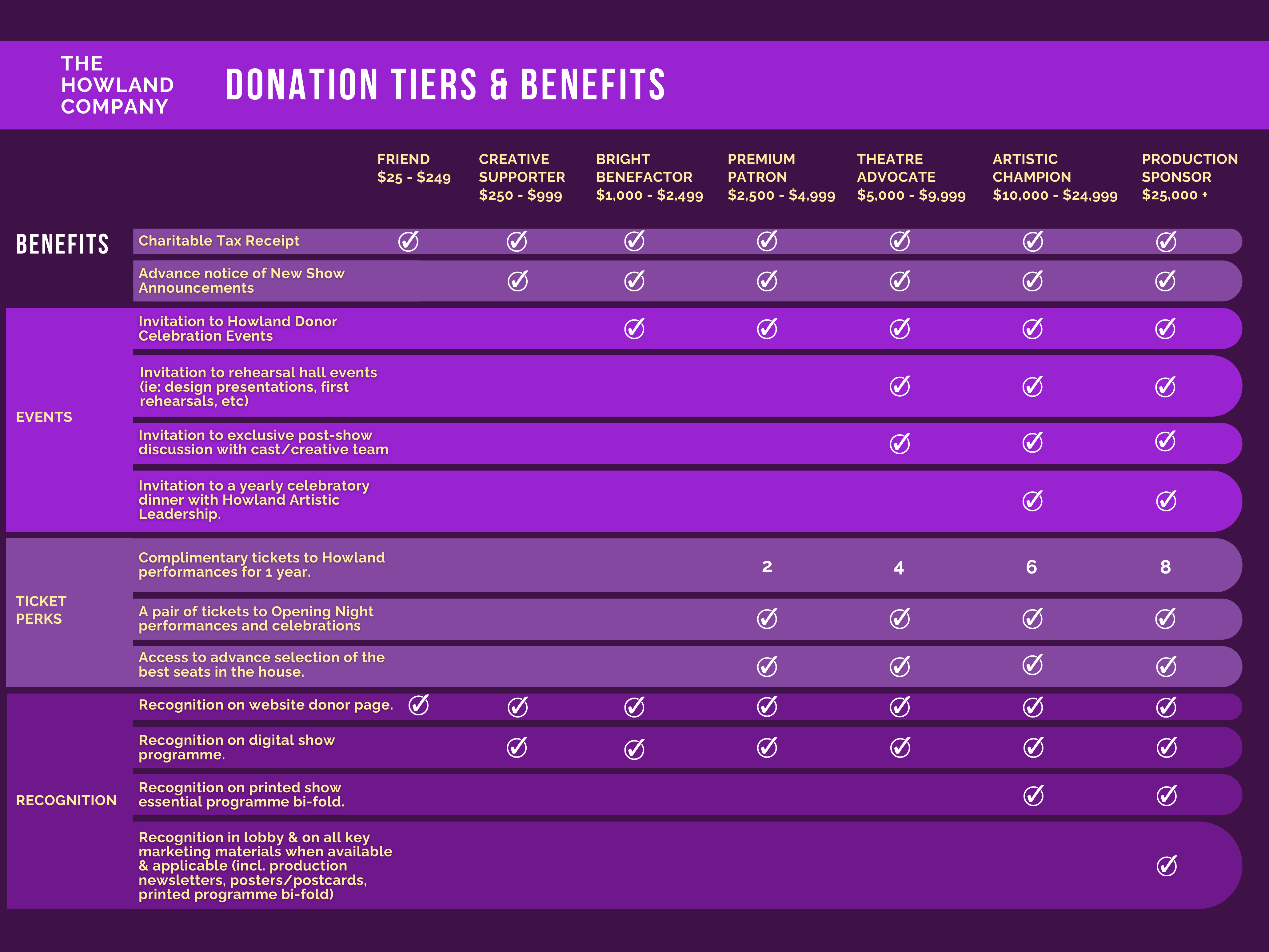 2025:26 Howland Company Donor Benefits